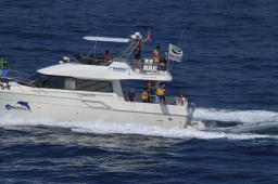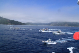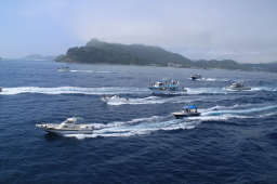 | さて、ここからが一大イベントです。 ツアー船が一斉におが丸を追いかけてきます。 |