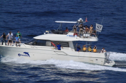 | 奥が父島タクシーの船、手前がPAPAYAの船です。 今回の旅行では両方の船に大変お世話になりました。 どちらに乗った時もハズレなしで、非常に楽しかったです。 ありがとうございました。 |