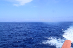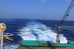 | 島影の見えなくなった海には、おが丸の引き波だけが 延々と続いていました… |