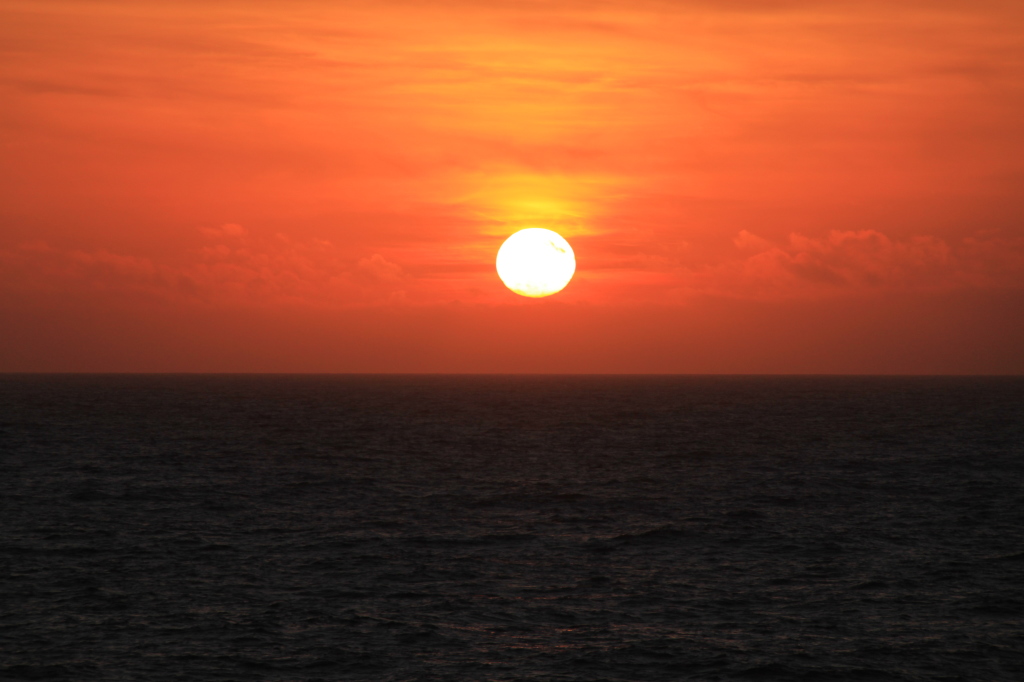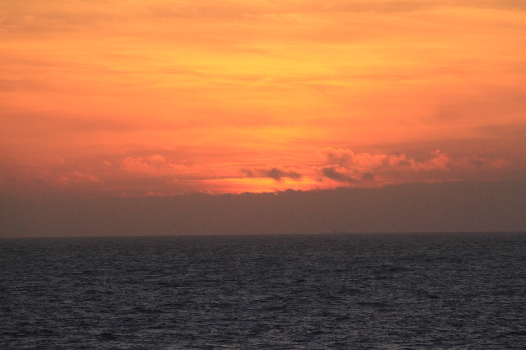 本当の水平線上には雲があり、実際には水平線に沈む夕日は見ることができませんでしたが、十分に夕焼けを堪能できました。