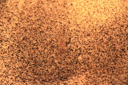 | 砂カニの赤ちゃんです。 模様が見事に砂です。 |