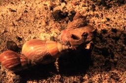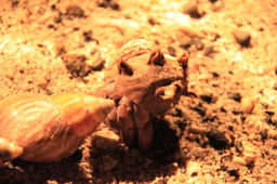 | オカヤドカリはほとんどが外来種のカタツムリであるアフリカマイマイ の殻を着ています。 でも1匹だけサザエの殻を着ているのがいました。 本来ならこれが自然な姿のはず… |