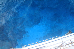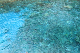 | これは船の上から船の脇を泳ぐ魚を撮ったものです。 まるで魚が水の上を浮いているようにしか見えないです。 それくらい水が澄んでいました。 |