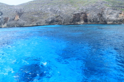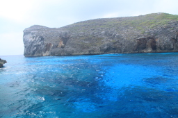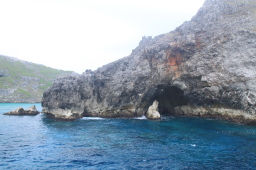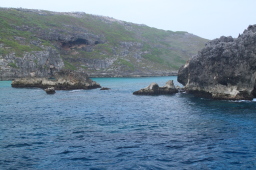 | この日はまず海中公園に向かったのですが、天気は出港前には雨が降っていました。 出港時も微妙な天気。 強い日差しがない状態でこの見え方です。これで天気がよかったら… 曇っていて若干寒かった(水温と気温が同じくらい)だったため、水に入るのに躊躇 していたら、船長からも、「これは入っておいた方がいいよ」の一言が。 |