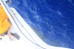 | 船のへさきの下を泳いでゆきます。 本当に真上から見ることができます。 |