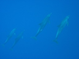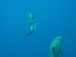 | 海底付近を泳ぐイルカに向かって潜っています。 うまい人はうらやましぃ〜 |