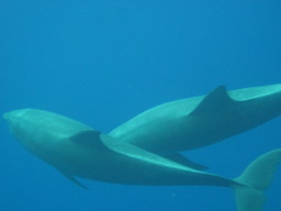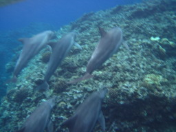 | このイルカは寝ています。 たいして動きもなくのそ〜っと泳いでいますが、私の全速でも 置いていかれます。、 |