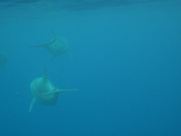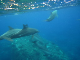 | 一緒に入った人はライフジャケットを着ているので、 この状態のまま水面を移動することしかできません。 その割にはイルカが妙に近い… |