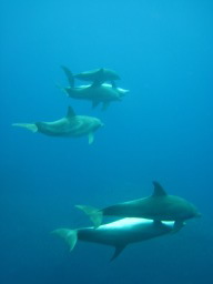 ミナミハンドウイルカだったのですが、数頭で団子状態になって遊んでいて、人間なんて目に入らないって感じでした。
