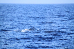 | 今回マッコウクジラを見ることができた場所からの写真です。 父島がはっきりと見える距離です。 あまりに近いので、水深が800mくらいの場所なんだそうです。 マッコウ的にはちょっと浅瀬に来た感じです。 |