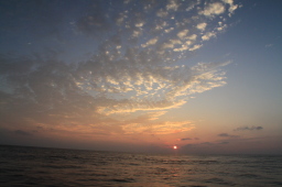 | もう10月ですので日の入りはやや早め。 マッコウウォッチの後はきれいな夕焼けとなりました。 |