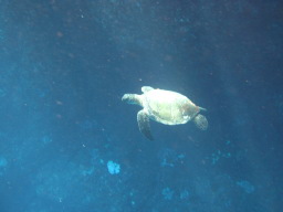 | ウミガメも居ました。 甲羅に海面からの光が当たって光っています。 光るウミガメです。 |