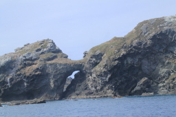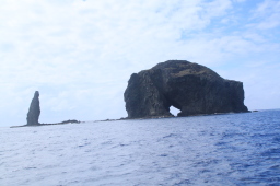 | マグロ穴に似ていますが、こちらはメガネ岩です。 反対から見ると穴が2つ開いています。 おが丸から穴2つを見ることができました。 |