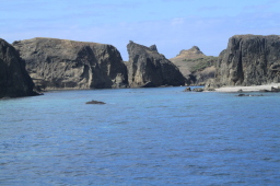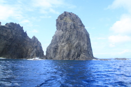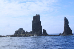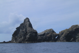 | 青い海に奇岩が映えます。 |