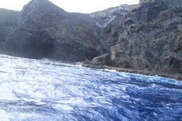| 媒島の東側は常に波が高く荒れた感じになっています。 | |