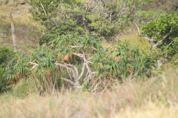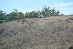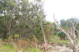 | ちょっと見えにくいですが、枯れてしまっている葉がたくさんあります。 これも台風の影響で潮をかぶったことによるものだそうです。 |