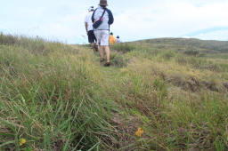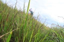 | こんな感じの草の中を歩きます。 我々にはどこが道だかよくわからないのですが、 ガイドさんたちはちゃんとわかっています。 さすがです。 |