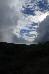 | 西の方以外はまだ晴天が見られます。 太陽は雲に隠れてくれているので、日陰のない場所のハイキングにはちょうど良かったです。 |