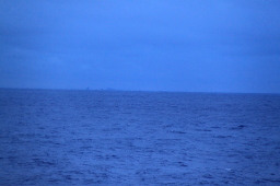 | 水平線上にかすかに聟島が見えています。 徐々に小さく、徐々に色を失って、水平線に溶けてゆきます。 |