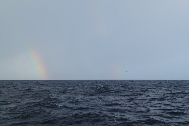 10月17日のケータ島ツアーのときに、上陸後に船から見えたダブルレインボーです。 |