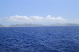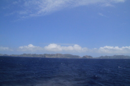 | 昨日までは最悪でしたが、やはり小笠原に来てしまえば 最高です! 少しガスがあり、かなりかすんでいますが聟島列島です。 |