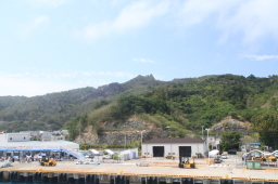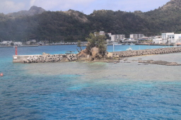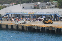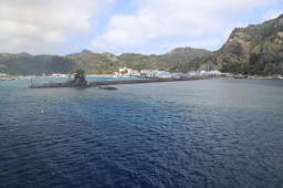 | 二見港です。 今回はお客さんが少ないようで、出迎えも少ないです。 元々、島にいるお客さんも少ないようです。 |