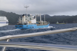 | せめぎ合いながら、徐々に我々の船に近づいてきます! | |