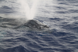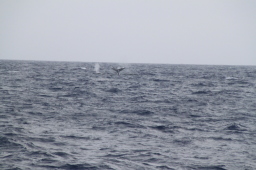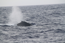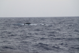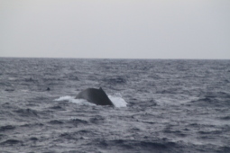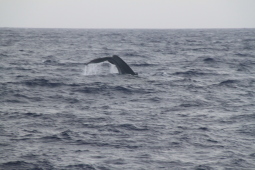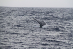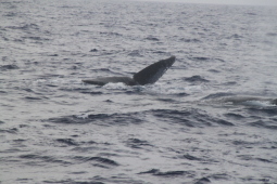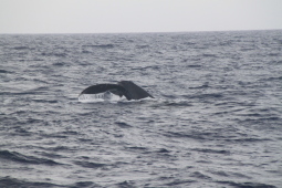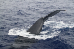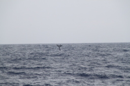 | クジラの背中が見えたと思ったら、尻尾を見せながら 海中に消えてゆきます。 |