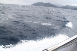 | 島の手前です。 かなり波が立っています。 |