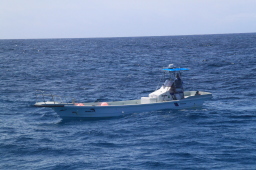 | 南島上陸組を待つ、PAPAYA Jr. 通称マンボウです。 これは多くの人が南島に上陸中にイルカが出たため、 浮上してくるのを一緒に探してもらっている時です。 |