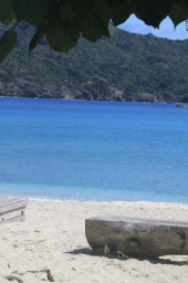 | 船が岸壁を離れると、みんな海岸ぎりぎりまで出てきて 手を振ってくれます。 |
