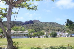 | PAPAYAの前にある公園です。 芝生も山も空も強い日差しを受けてきれいです。 |