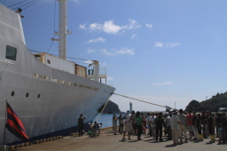 | 岸壁はお見送りの人でいっぱいです。 | |