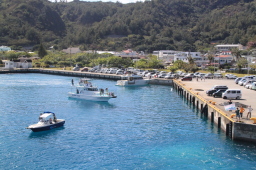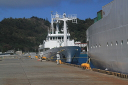 | おが丸接岸場所の西側のあたりです。 お見送り船が、お見送り希望者を乗せています。 |