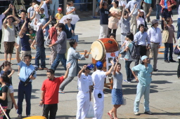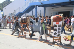 | 出航前に安全祈願の太鼓が鳴らされます。 | |