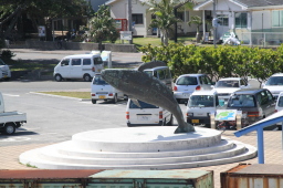 | 二見港のシンボル、ブリーチするザトウの像です。 | |