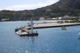 | 青い海にたくさんの船の航跡がきれいです。 しかも、お見送りという状況が、更にこの景色を印象的なものにしてくれます。 |