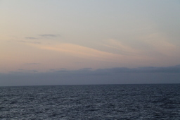 父島を出港した時には天気も良かったのですが、日没時間にデッキに出てみると水平線上に雲が…