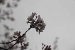 雨の中、満開の桜
