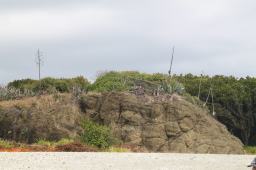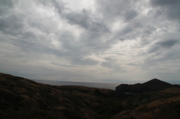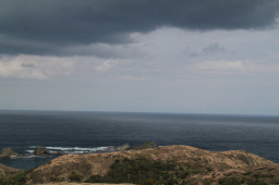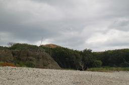 | 聟島上陸ポイントの浜です。 かなり残念な天気…とも限りません。 大山まで登るとかなり暑くなるので、 頂上までは曇っていてもOKです。 |