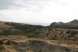 | オガサワラスナハキバチの巣がある場所です。 砂の中に穴を掘って巣を作るそうです。 |