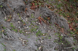 | 上の写真の左側あたりです。 巣の場所に石が並べてあります。 |