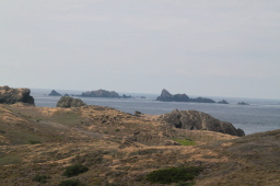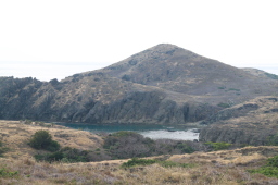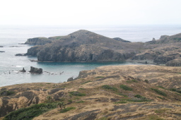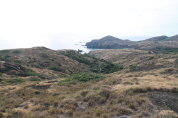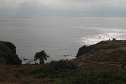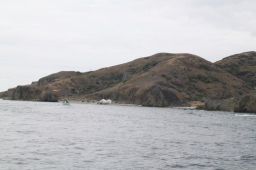 | 小花湾の奥にテントが並んでいます。 植生を回復させるための作業をしている人達が 寝泊まりしているそうです。 |