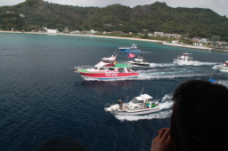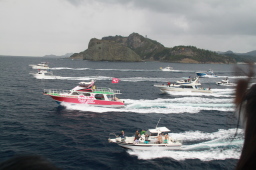 | 青灯を過ぎたあたりから、一斉に船が近づいてきます。 | |