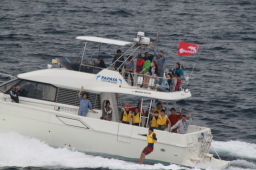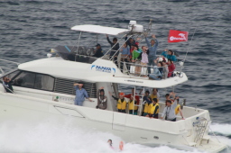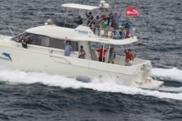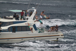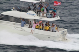| お見送りダイブが始まりました。 残念ながら最前列が取れず、最初の船のダイブを 見逃してしまいました。 |