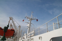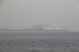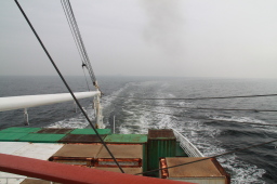 | 船の進行方向も、ひたすらかすんで何も見えません。 | |