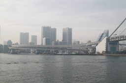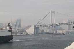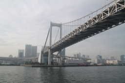 | ゴールが見えてきました。 行きはスタートゲートだったレインボーブリッジ。 あれをくぐれば夢の時間は終わりです。 |