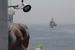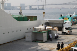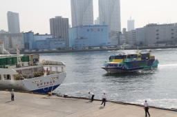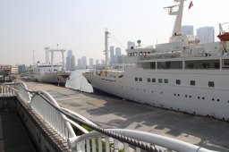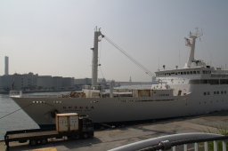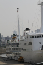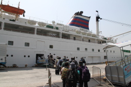 | 「友」の乗船が終わりタラップが離されます。 | |