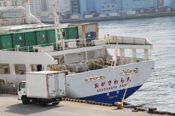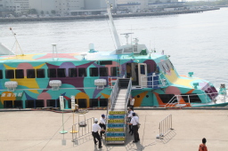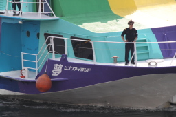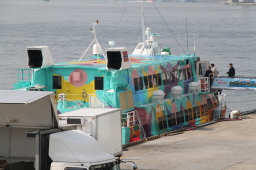 | なんと、こちらはセブンアイランド「夢」♪ 8:40発の大島行きの看板を見たので、多分それでしょう。 |