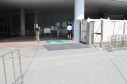| さぁ〜て、いよいよ乗船が始まりました。 この日は晴れていたので集合場所は建物の外の中庭。 まずは特2等以上の人から乗船です。 でも、この日は300人くらいしか乗ってないそうで、混乱の気配は まったくありません。 |